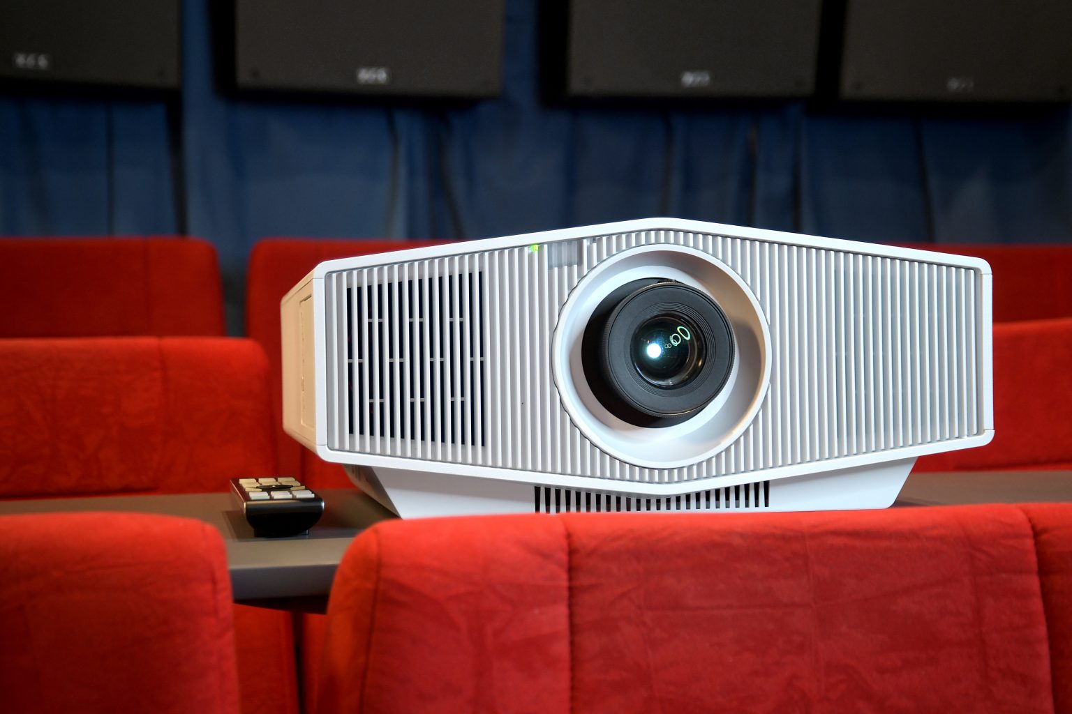 半開放空間,視頻部分投影選用了愛普生的高亮度投影機,3000流明真實亮度,即使開燈播放都能有很好的畫面效果,潔白的機身和超跑的造型和頂面也交相呼應。