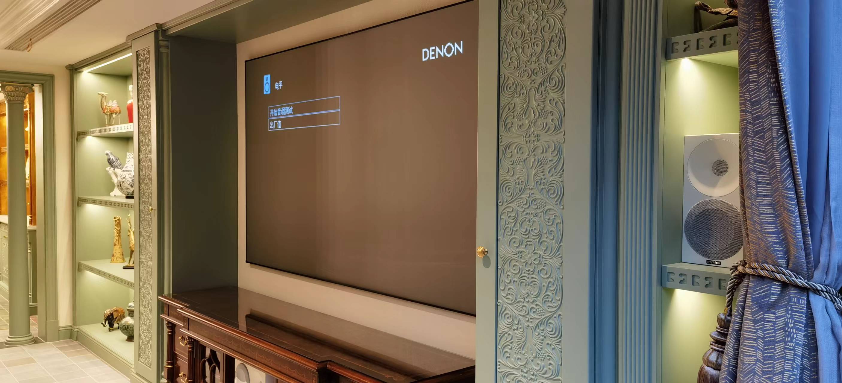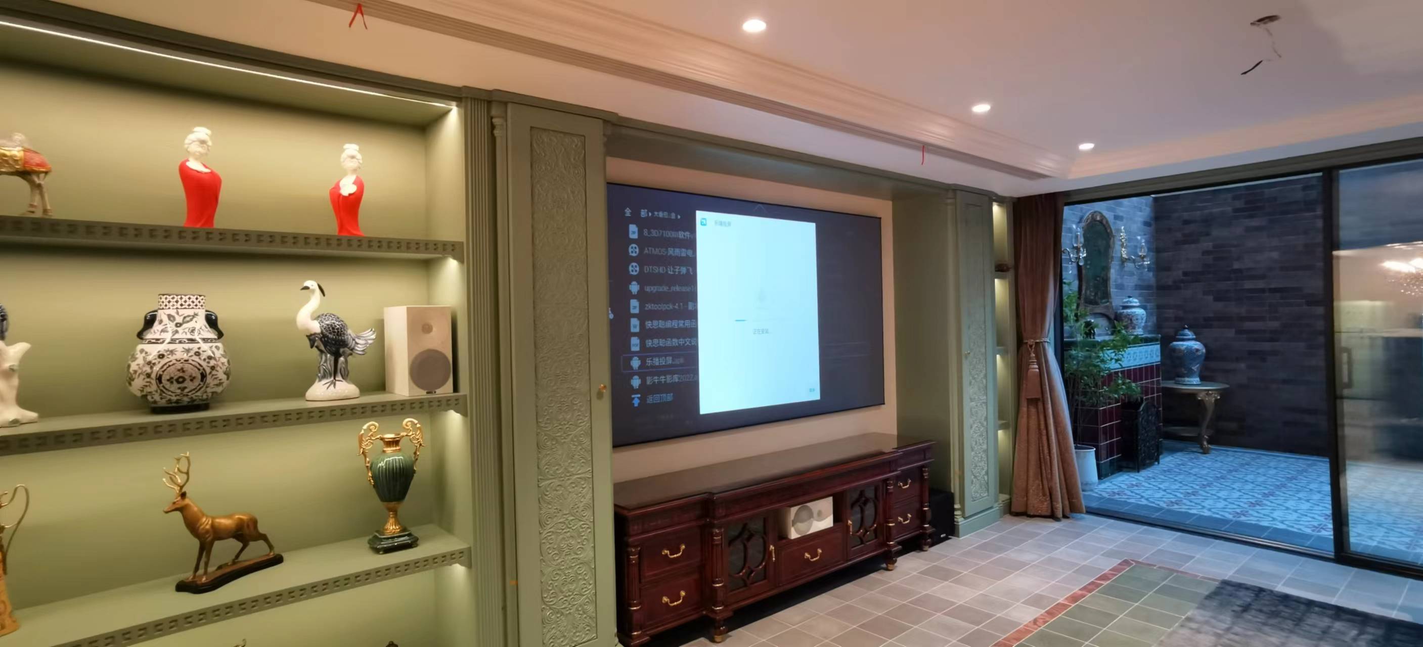 這套影院我們從19年開始接洽設計,耗時3年終于完成交付工作,客戶陳姐是知名的藝術大師,對中西方文化融合有自己獨特的理解和要求,所以對于選品非常苛刻。