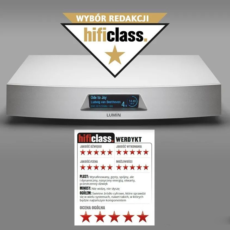 近期,歐洲音響雜志《hificlass》發布他們對于LUMIN T3的評價,并授予其“編輯選擇獎”,且四大項評測指標、