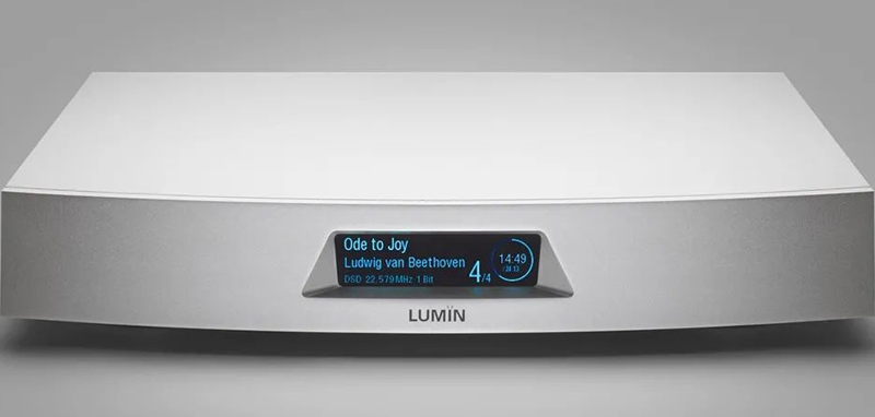 T3的外觀設計也值得一提,它的設計風格和Lumin的高級機種P1看齊,前面板是采用整塊航鈦鋁合金CNC加工而成,有漂亮的圓弧曲線,前面板正中央有藍色冷光顯示屏。整體造型和設計延續了Lumin一貫的美學。